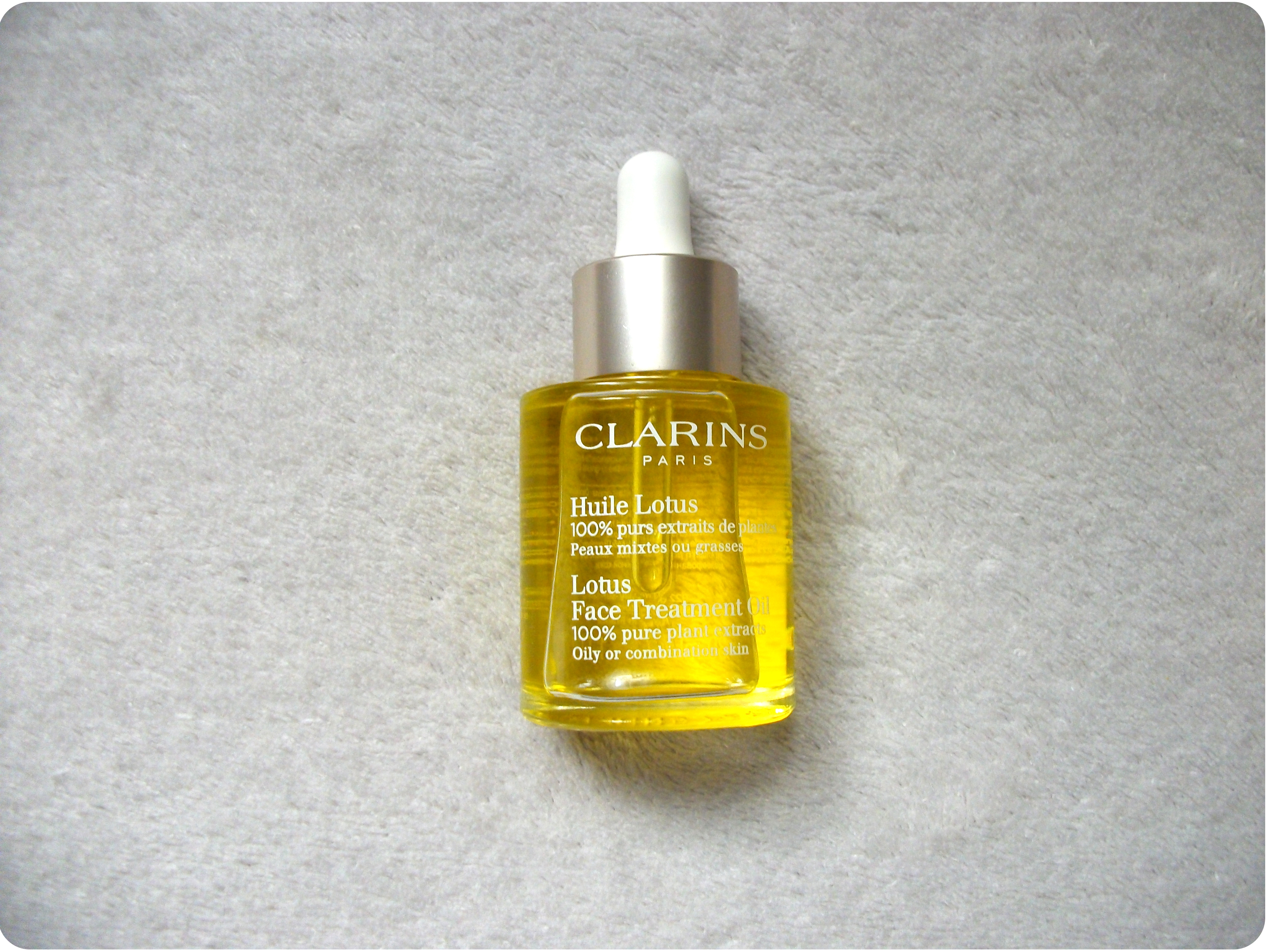 J’ai voulu tester une de ces huiles pour peaux mixtes à grasses qui promettent de réduire les imperfections et lisser le grain de peau. J’ai choisi l‘huile lotus de chez Clarins, à base d‘huile végétale de noisette connue pour être adaptée pour les peaux mixtes à grasse et donc ne bouche pas les pores.