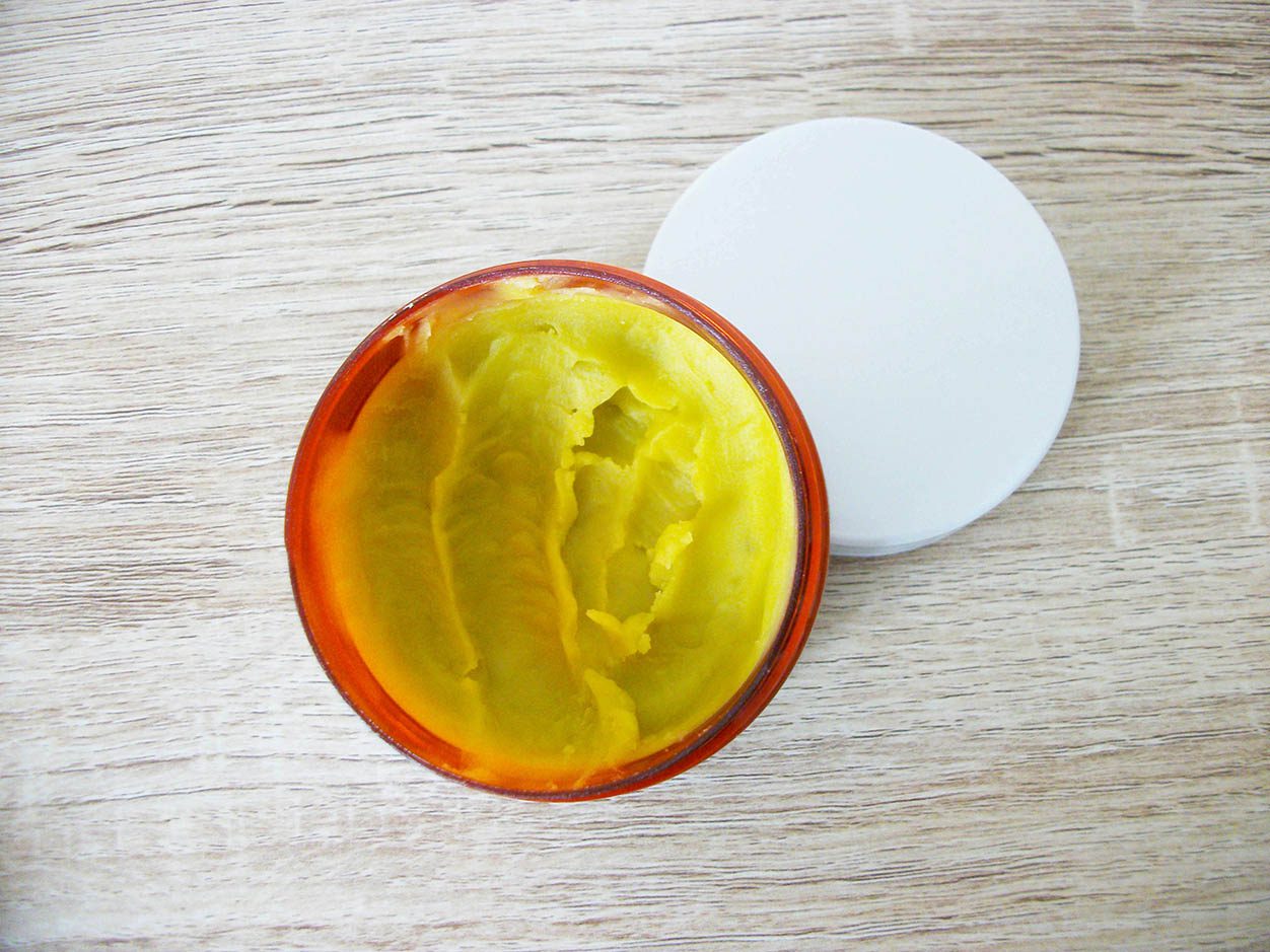 Récemment j’ai découvert le beurre d’avocat de chez Aroma zone, c’est un beurre de couleur verte, avec une odeur d’huile d’olive assez forte. Pourtant il ne contient que de l’avocat, et comme vous pouvez voir sur la photo, j’ai bien entamé le pot.