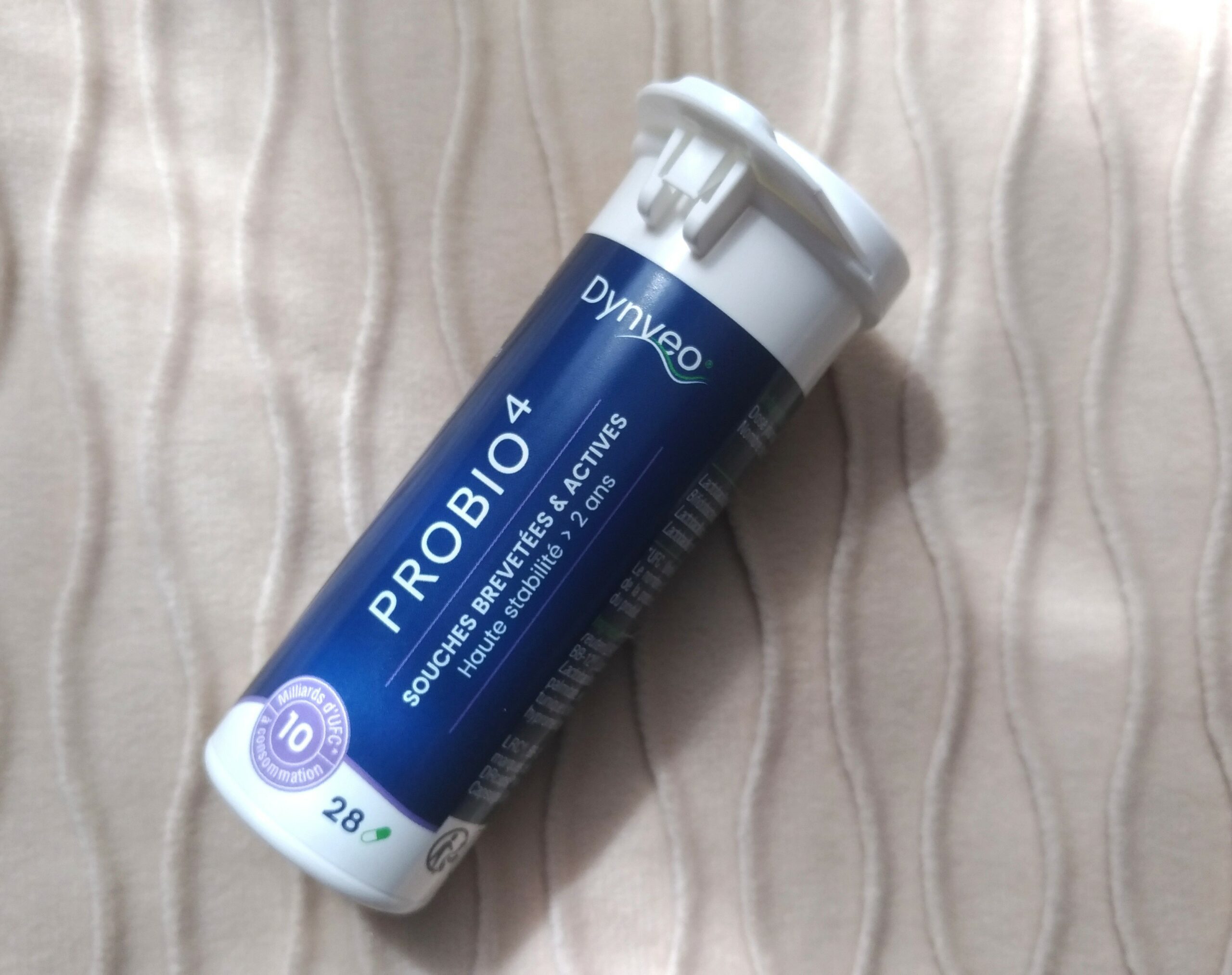 La marque propose deux compléments à base de probiotiques : le Postbio3 et le Probio4. Pour ma part, j’ai choisi le plus récent : Probio4. Ce probiotique haut de gamme contient quatre souches brevetées et cliniquement étudiées, spécialement formulées pour soutenir l’équilibre du microbiote intestinal.