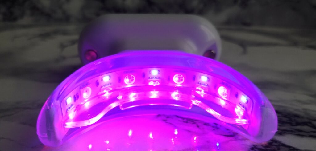 Il ne s’agit pas uniquement de LED bleues, mais également d’une combinaison de lumière LED rouge et proche infrarouge. Les LED bleues vont agir pour éclaircir les dents, éliminer les taches et réduire les mauvaises bactéries.