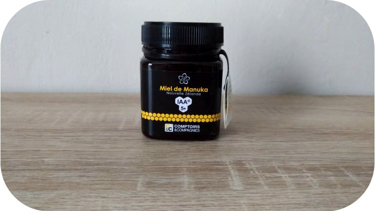 C’est vrai que le miel en général est antiseptique et adoucissant pour les maux de gorge, mais là, c’est plutôt la version au-dessus. Le manuka est un arbrisseau, cousin du tea-tree que l’on trouve uniquement en Nouvelle Zélande et qui a des vertus exceptionnelles. Il est utilisé depuis longtemps par les maoris, qui lui reconnaissent des vertus antivirales et antibactériennes. Pour cette marque que j’ai choisie et qui est la plus répandue le miel est garanti sans pesticides. Ce miel est plus cher que le classique et il y a différents indices IAA qui correspond à la teneur en méthylglyoxal. C’est la molécule contenue dans le miel de manuka, plus l’indice est élevé plus le miel est efficace. Le prix varie en fonction de l’indice et ce miel existe en version classique ou bio.