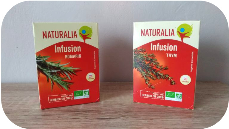 C’est un classique et pourtant tellement efficace , lorsque je sens que je couve quelque chose je prends du thym connu pour ses bienfaits antiviraux et du romarin aux propriété antibactérienne.Le thym en infusion c’est vraiment la plante spéciale refroidissement. Cette fois j’ai opté pour les sachets plus pratiques et faciles à emporter. Après chaque repas de préférence pour éviter les brûlures d’estomac, je vous avais déjà parlé d’infusion à base de thym dans cet article.