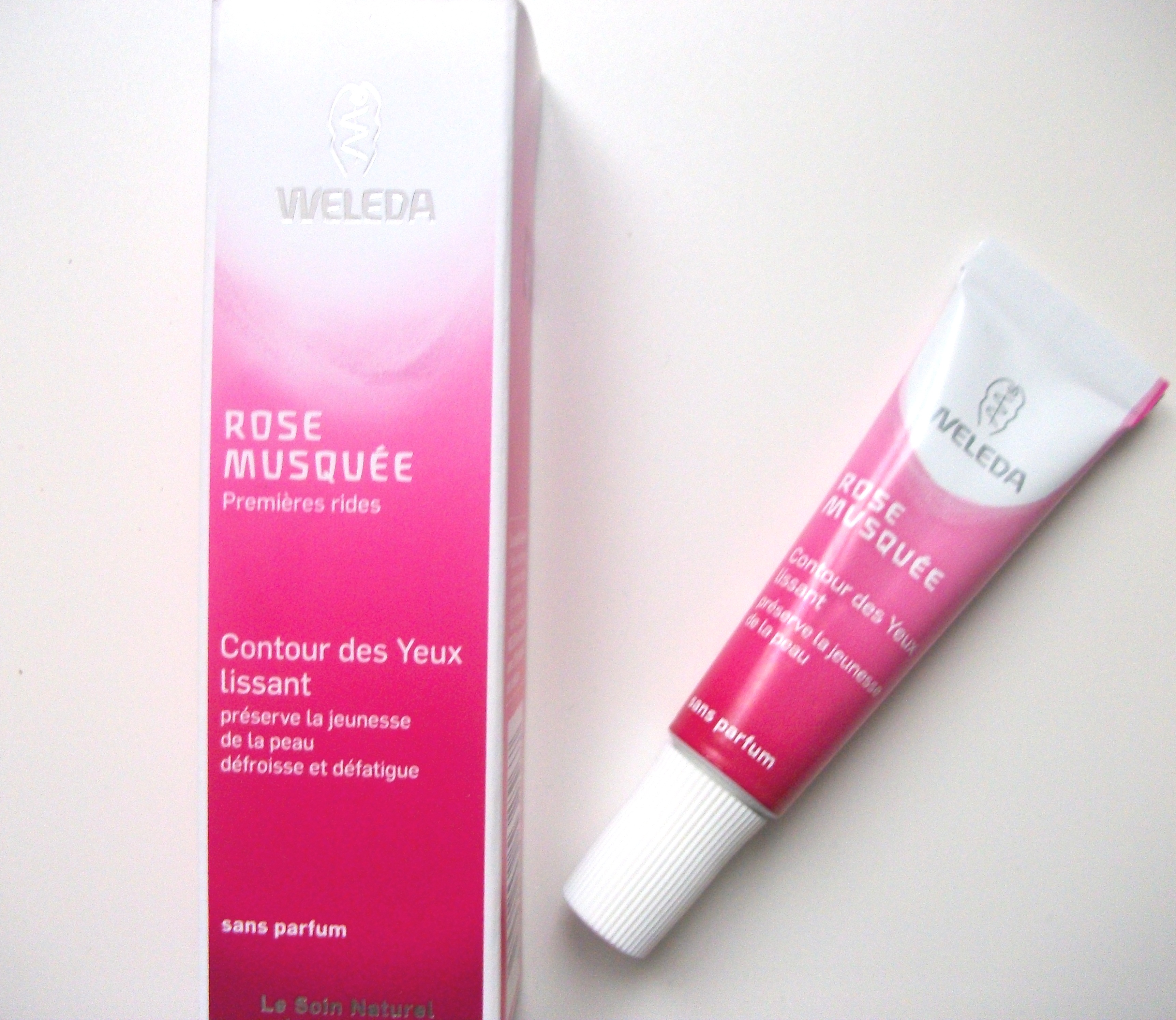 Ce contour yeux se présente sous la forme d’un tube en aluminium de 10 ml. Il est ciblé pour les premières rides, mais je ne l’ai pas acheté dans ce but. Il contient donc de l’huile de graine de rose musquée, mais aussi, entre autres de l’huile de noyau de pêche, de l’huile d’amande douce et de l’huile de jojoba. La combinaison de ces huiles est censée conserver le capital jeunesse de la peau, défroisser et défatiguer la peau. Je précise aussi que ce soin est sans parfum.