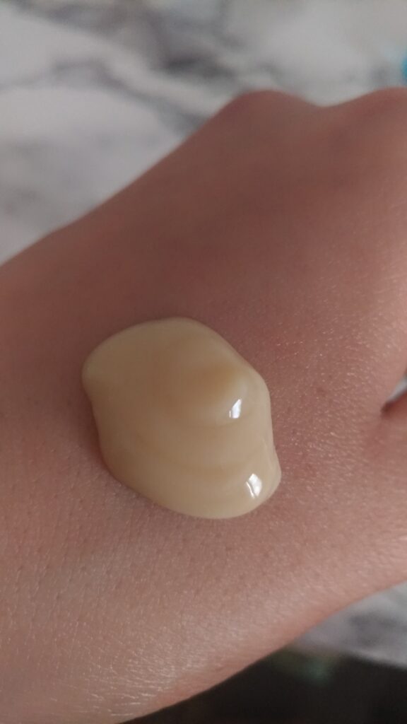 La texture est onctueuse et laisse un léger film d’hydratation, j’ai aussi apprécié l’embout flacon pompe hyper pratique.