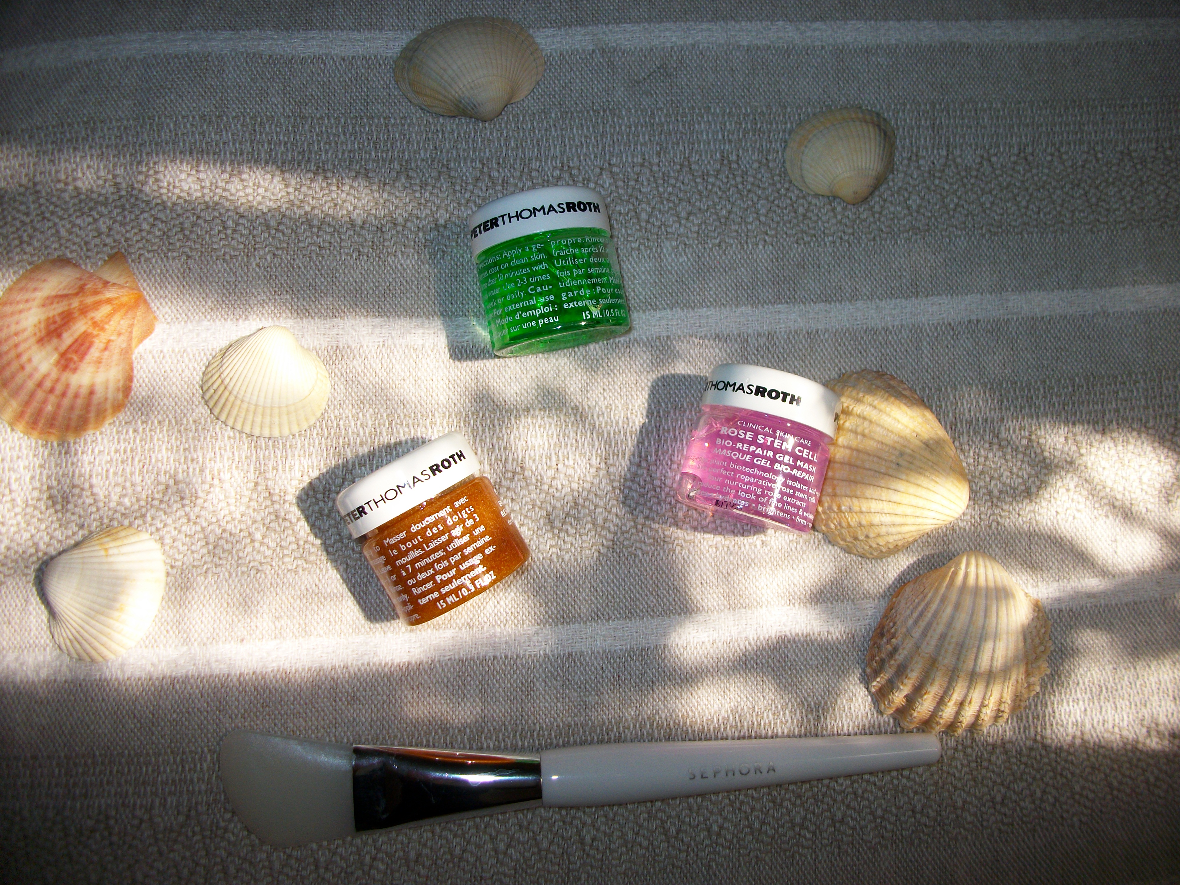 En ce moment, j’utilise les mini masques de Peter Thomas Roth. Concombre ( hydratant dé-tox extrême), rose ( bio-repair,réparateur) et citrouille (resurfaceur cutané enzymatique).