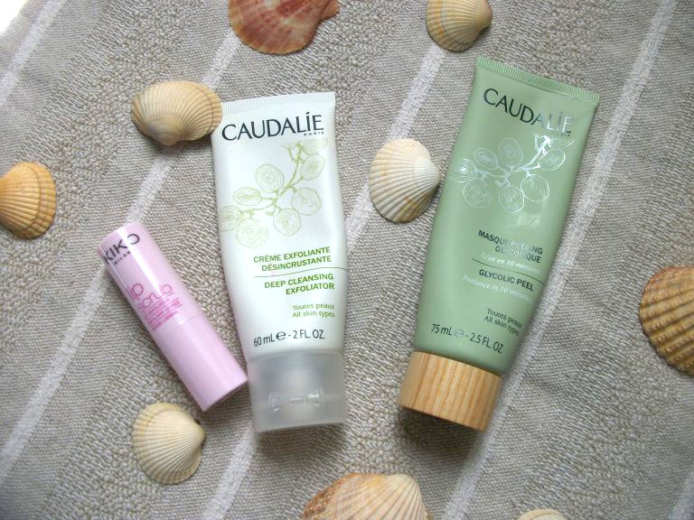 (Kiko exfoliant lèvres , Caudalie crème exfoliante désincrustante, Caudalie masque peeling glycolique)